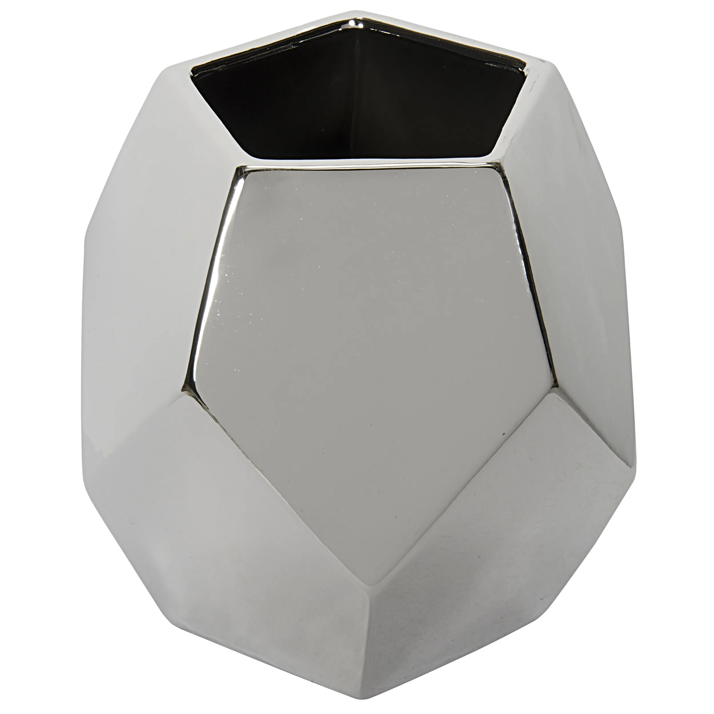 A geometric metallic vase or decorative container, characterized by its faceted polygonal form. Liner recommended.