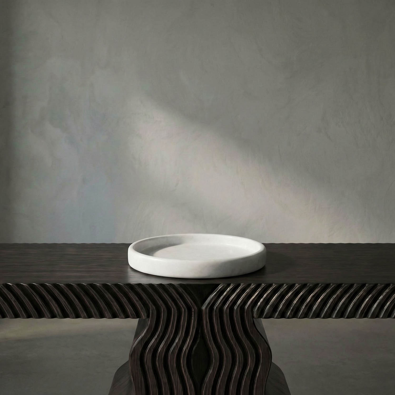 Carved from white marble, this contemporary medium round tray features simple lines that allow the natural material to take center stage. Each is unique, as no two pieces of natural stone are identical.Ê