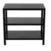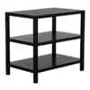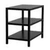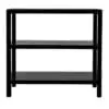 The 2-Shelf Side Table, resembling a Parsons table with its clean, straight lines and minimalist form, features a Hand-Rubbed Black finish and two open shelves. It blends classic and simple silhouette with practical storage.