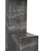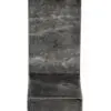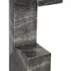 This narrow yet substantial side table features a polished black marble rectangular top resting on a geometric pedestal base. Its minimalist and sculptural form offers a bold, sophisticated accent.