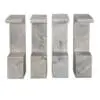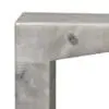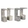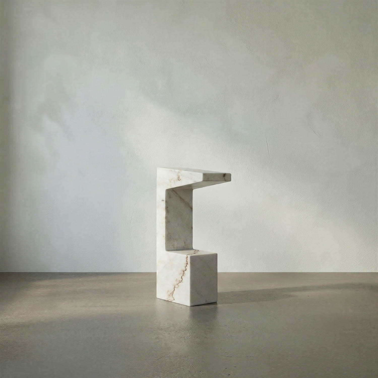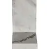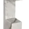 This narrow yet substantial side table features a polished white marble rectangular top resting on a geometric pedestal base. Its minimalist and sculptural form offers a bold, sophisticated accent.