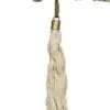 This sculptural chandelier in Antique Brass and natural rope offers a contemporary interpretation of early 19th-century Empire-style lighting. Its cage-like form and eight bulbs blend classical grandeur with industrial and nautical influences.
