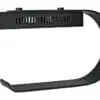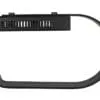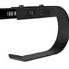 The Alfred Desk Lamp features a broad, arching ribbon base in matte black finished iron and geometric details for a post-modern industrial look.