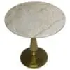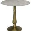 This round cafe-inspired side table features a Bianco Crown marble top accompanied by an Antique-Brass teardrop cast-iron base. Its industrial yet refined design, along with the natural stone variations, creates a unique and bold accent.