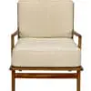 The Allister Chair, available in white cotton, features a teak frame with a handwoven rattan seat and backrest. Its minimalist design provides comfortable support while seamlessly integrating into various decor styles.