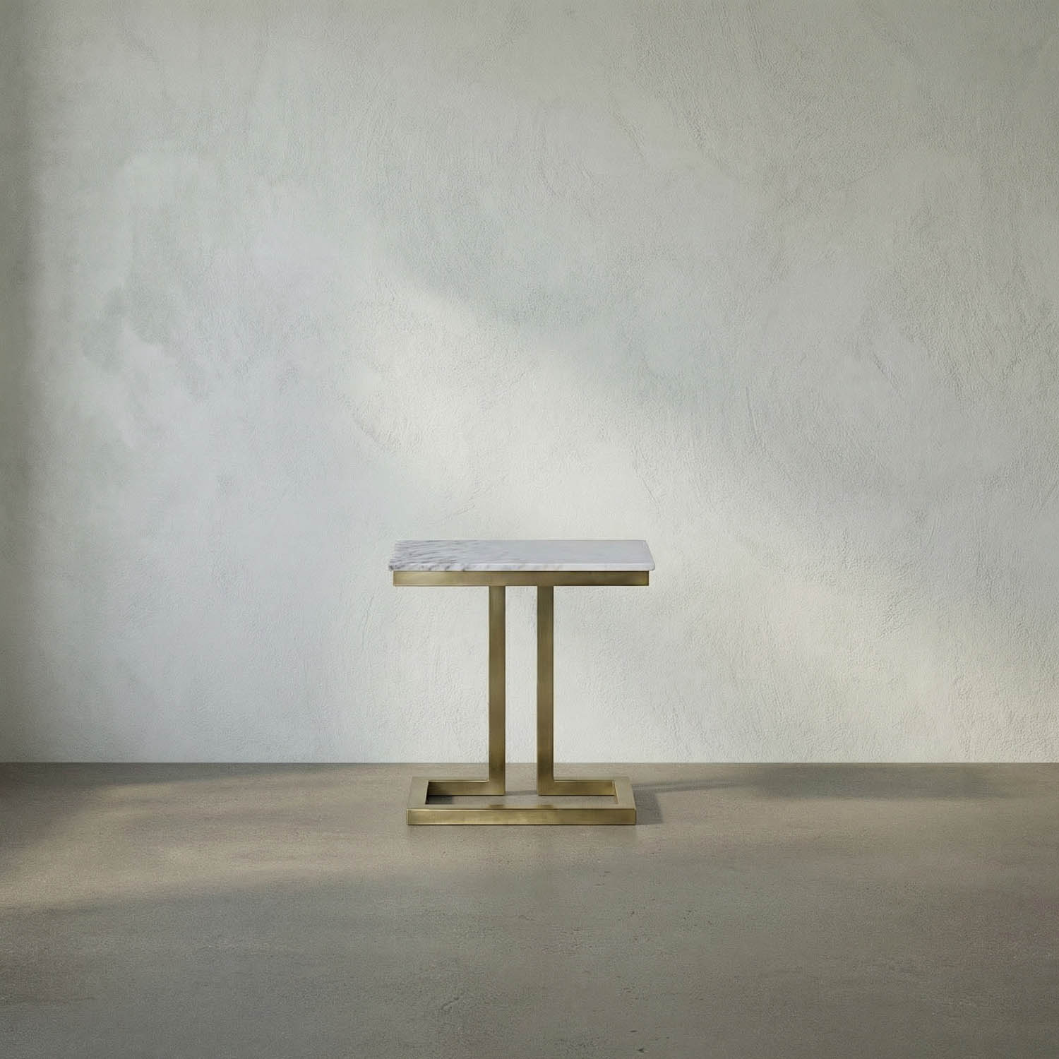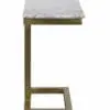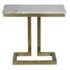 The Alonzo Side Table combines classical Grecian design with modern materials, featuring a rectangular white marble top and an Antique Brass iron base. This creates an elegant table that is perfect for transitional and contemporary interiors.