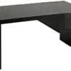 The two-drawer Alvaro Desk features a sleek black iron frame and top, combined with warm walnut drawers, blending minimalist design with sturdy construction for a modern, sophisticated, and functional workspace.