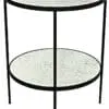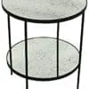 The two-tiered Anna Side Table features dual antiqued mirrored tops supported by slender Matte-Black iron bands. Its minimalist, airy design combines mirrored elegance with industrial structure, creating a sophisticated accent for modern and transitional interiors.