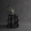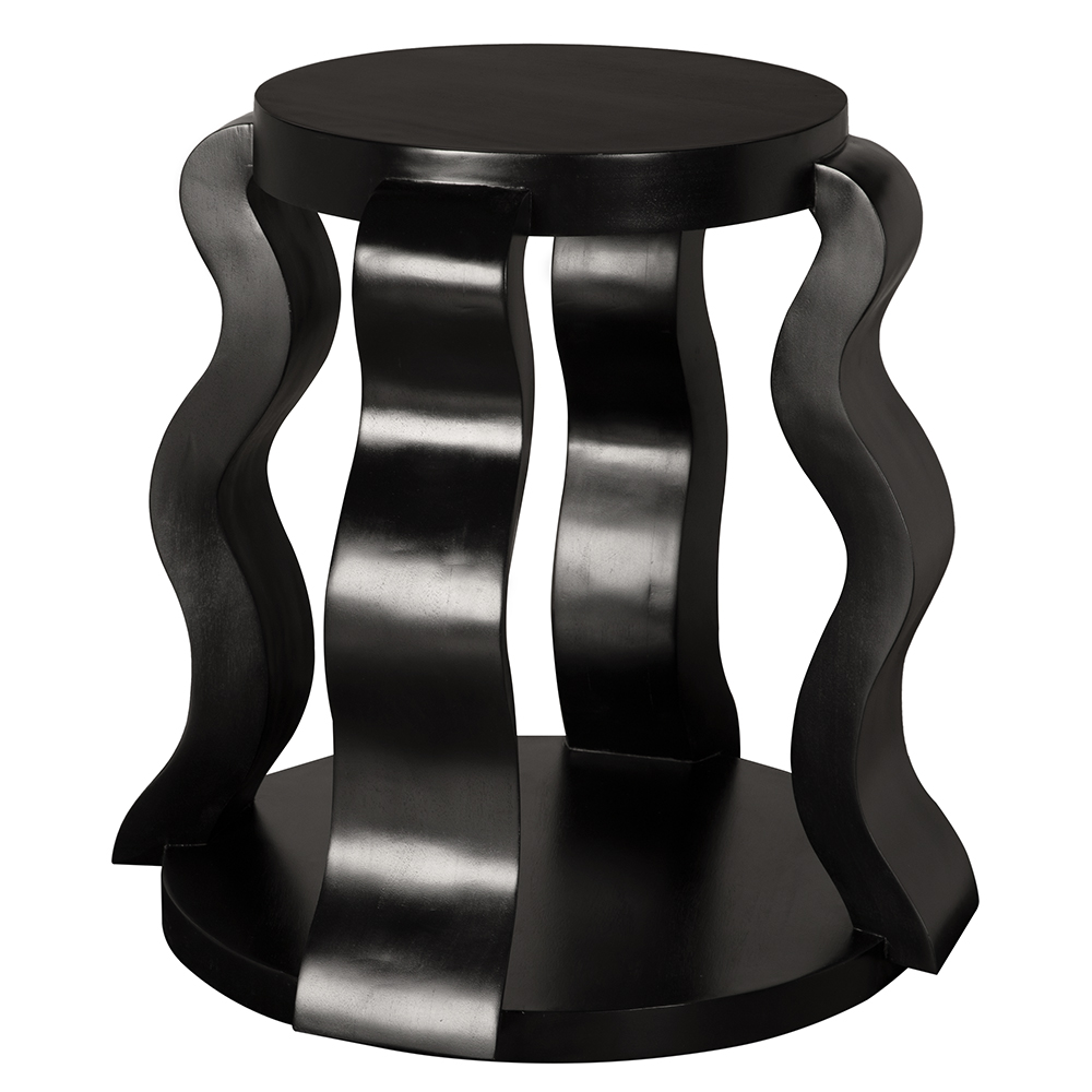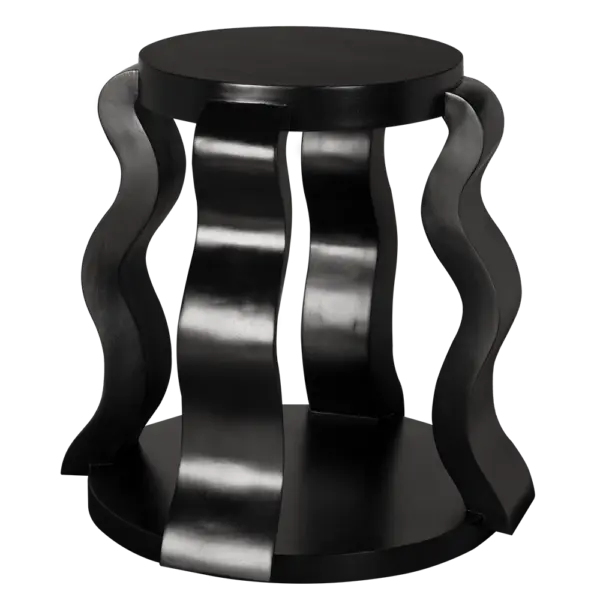 This round sculptural side table features four bold, ribbon-like legs finished in Hand-Rubbed Black. Combining postmodern and sculptural designs, its fluid silhouette merges artistic allure with modern functionality.