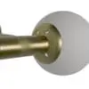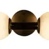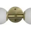 An Antique Brass minimalist wall sconce in antique brass, featuring two frosted glass orbs suspended symmetrically from a central circular plate. Its clean lines and soft illumination add understated elegance to modern or transitional interiors.