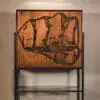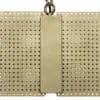 The Apollo Lantern has a perforated rectangular brass-finished shell that filters light, creating a warm, patterned glow. Its design combines handcrafted elements and ornamental features with a modern edge.