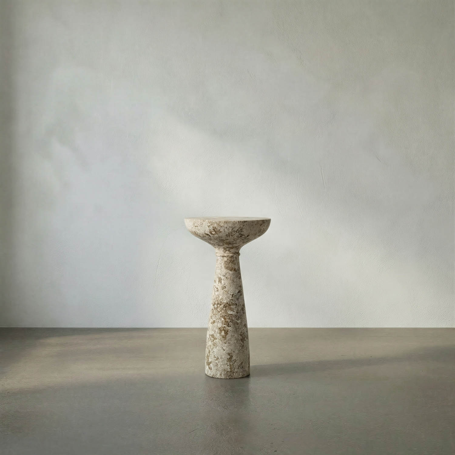 The unrivaled beauty of natural stone shines in this deceptively simple side table. The remarkable piece features a simple cylindrical base and round top. Artisan-crafted of solid cream marble, this accent table was designed with simple lines to allow the stone to center stage.