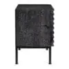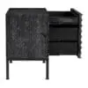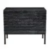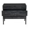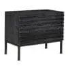 The three-drawer Arturo Console features our black walnut finished body and a sleek matte black iron frame. Its three scalloped drawers provide practical storage within a refined, minimalist design.