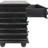 The Ascona Small Chest has a grounded, architectural presence. Made from mahogany in a Hand-Rubbed Black finish, it features three drawers and rests on carved bun feet with stepped detailing that subtly nods to Art Deco.