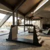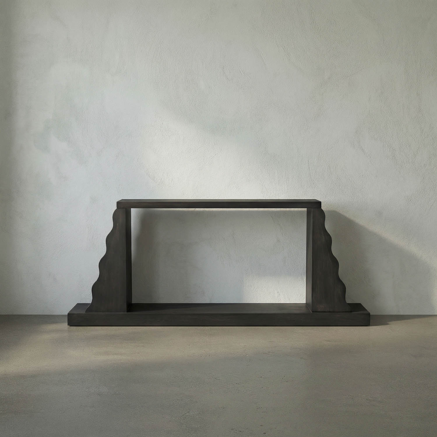 The Aurora Console showcases a striking, sculptural design in rich ebony-stained walnut. With its stepped silhouette and open center, it is ideal for creating a statement in modern or transitional spaces.