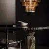 Eastern-inspired lines are rendered in Mindi wood side chair and enhanced with a dramatic, black, hand-applied finish.
