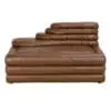 The Bandera Sofa features top-grain Roche tan leather with a sculpted, layered design and low profile. Its modular form offers flexible seating and adds a modern focal point to any living area.