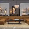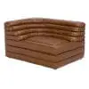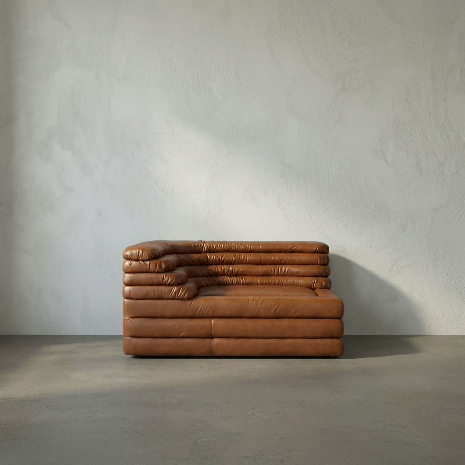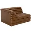 The Bandera Sofa features top-grain Roche tan leather with a sculpted, layered design and low profile. Its modular form offers flexible seating and adds a modern focal point to any living area.