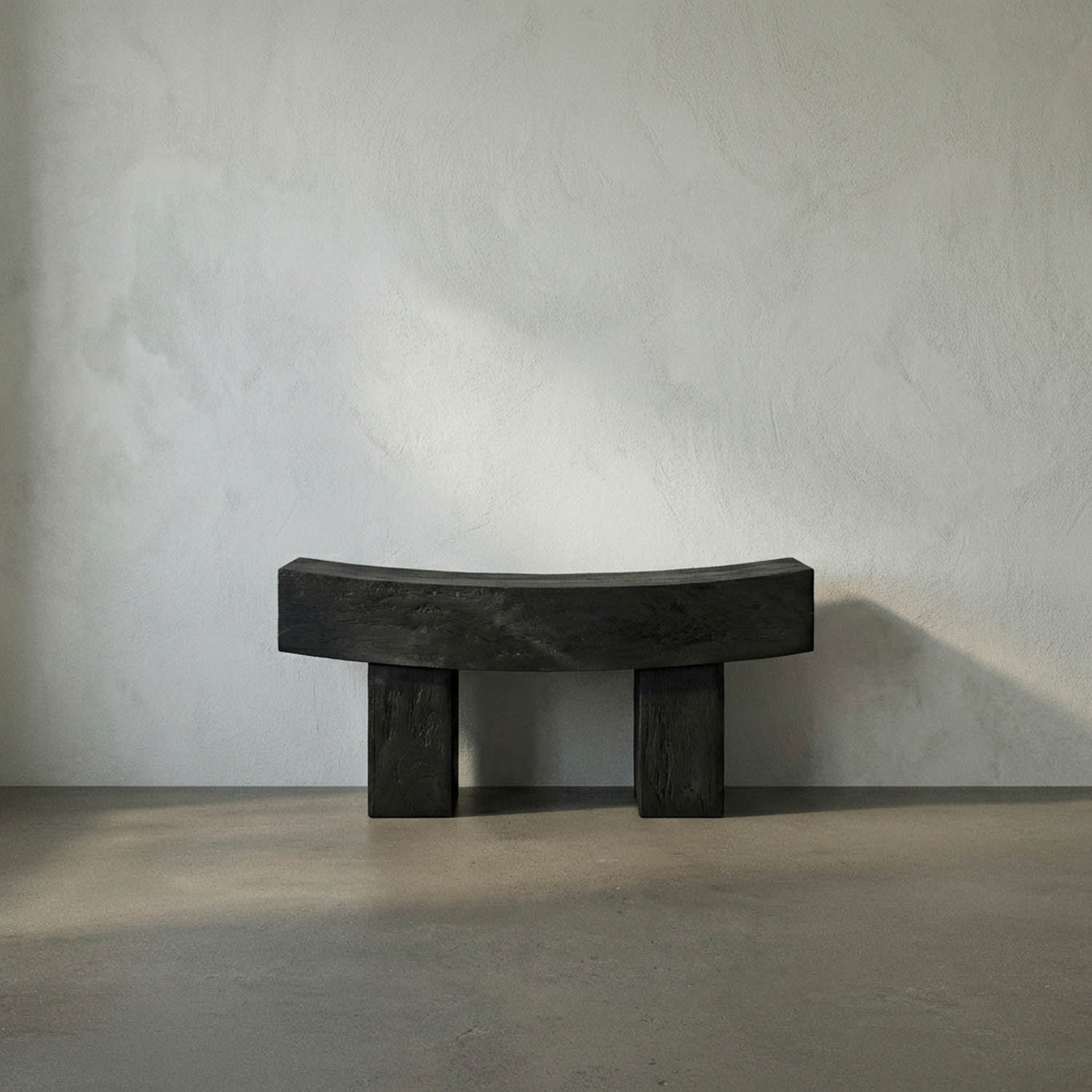 Our Bow Bench features a simple, blocky design with a slightly curved seat, evoking the peaked rooflines of Asian architecture. Our Burnt Black finish adds the look of a traditional Japanese finish.