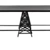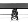 A striking coffee table featuring a matte black iron base with legs that mimic an abstract interlocking “X” truss design. Its geometric structure merges modern industrial style with artistic craftsmanship, creating a bold centerpiece.