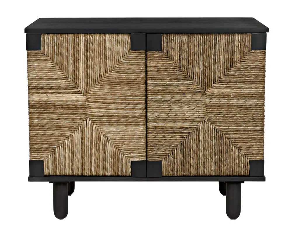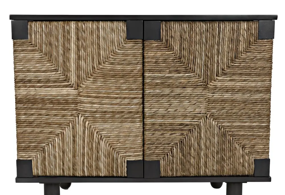 Pale finished mahogany pairs beautifully with natural sea grass in this updated classic. Designed to provide maximum display space across the mahogany top, it also features two generous lower compartments, each with a fixed shelf.
