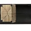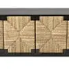 A four-door sideboard with a natural-meets-modern aesthetic features handwoven seagrass doors, creating a diamond illusion. Finished in a warm Pale finish, it has tapered legs and hides two compartments with fixed shelves.