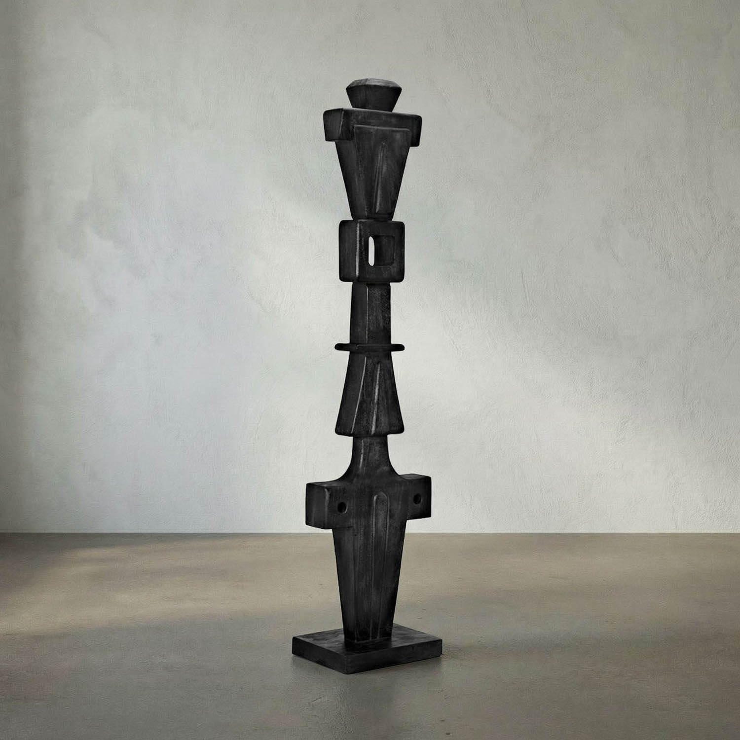 Handcrafted from carved Munggur wood, our Brutus totem-style vertical statue evokes tropical influences, while the Burnt Black finish accentuates the natural wood grain.