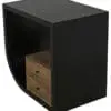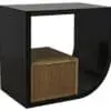 A sculptural side table featuring a hand-rubbed black finish and a natural teak drawer. It’s perfect for modern, transitional, and mid-century modern interiors, blending the warmth of natural wood with minimalist refinement.