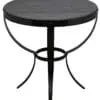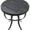 The Byron Side Table boasts a modern-transitional style with a black marble top supported by slender Matte-Black iron legs, seamlessly blending timeless stone elegance with an airy, minimalist base for versatile appeal.