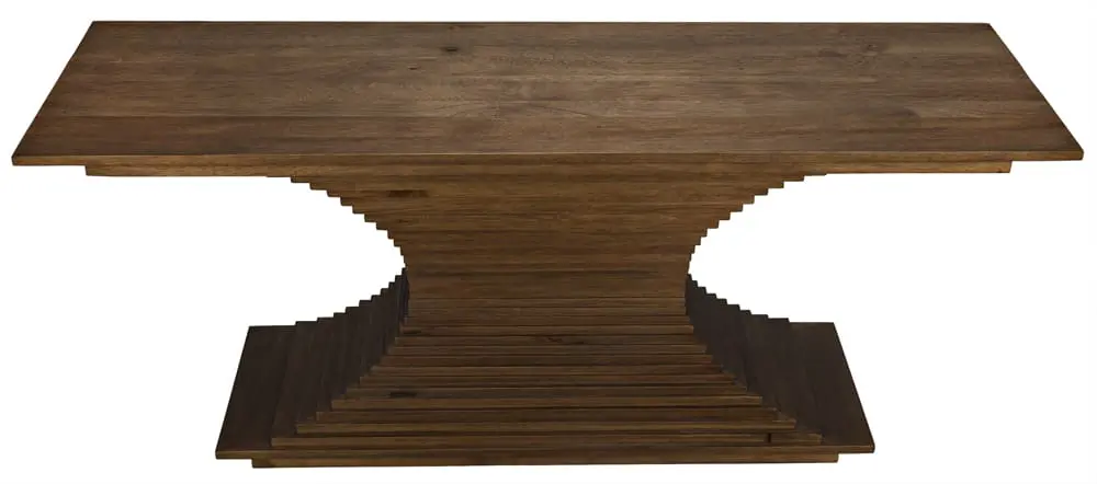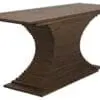 The Cambio Console is a sculptural design crafted from stacked walnut layers that taper inward, resulting in an elegant hourglass silhouette. Our rich Dark Walnut finish highlights its bold form and natural texture.