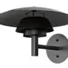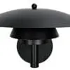 The Caprese Sconce features a matte black iron body and a wide, shallow dome shade that directs light. Its clean, streamlined design merges industrial simplicity with modern minimalism, making it a versatile accent piece for contemporary spaces.
