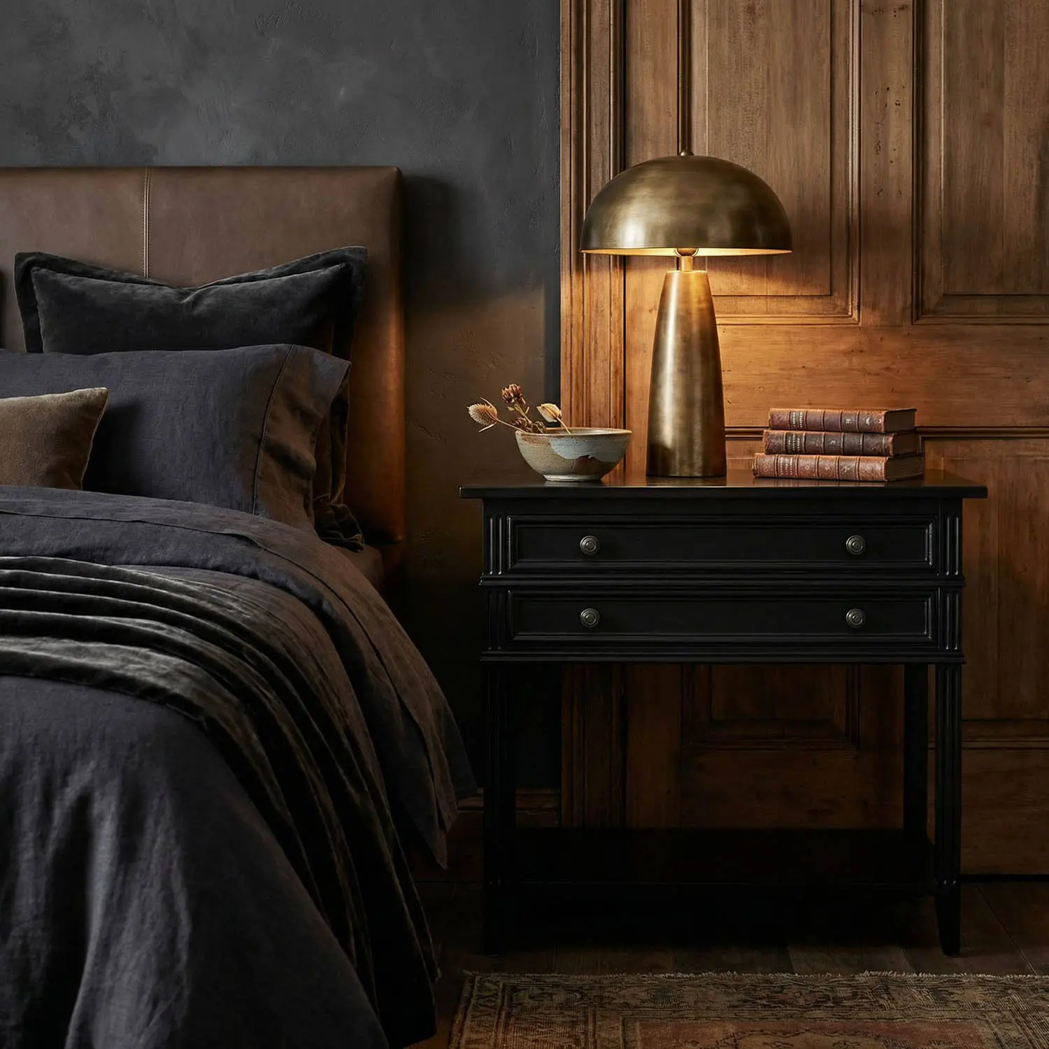 Colonial 2-Drawer Side Table, Distressed Black