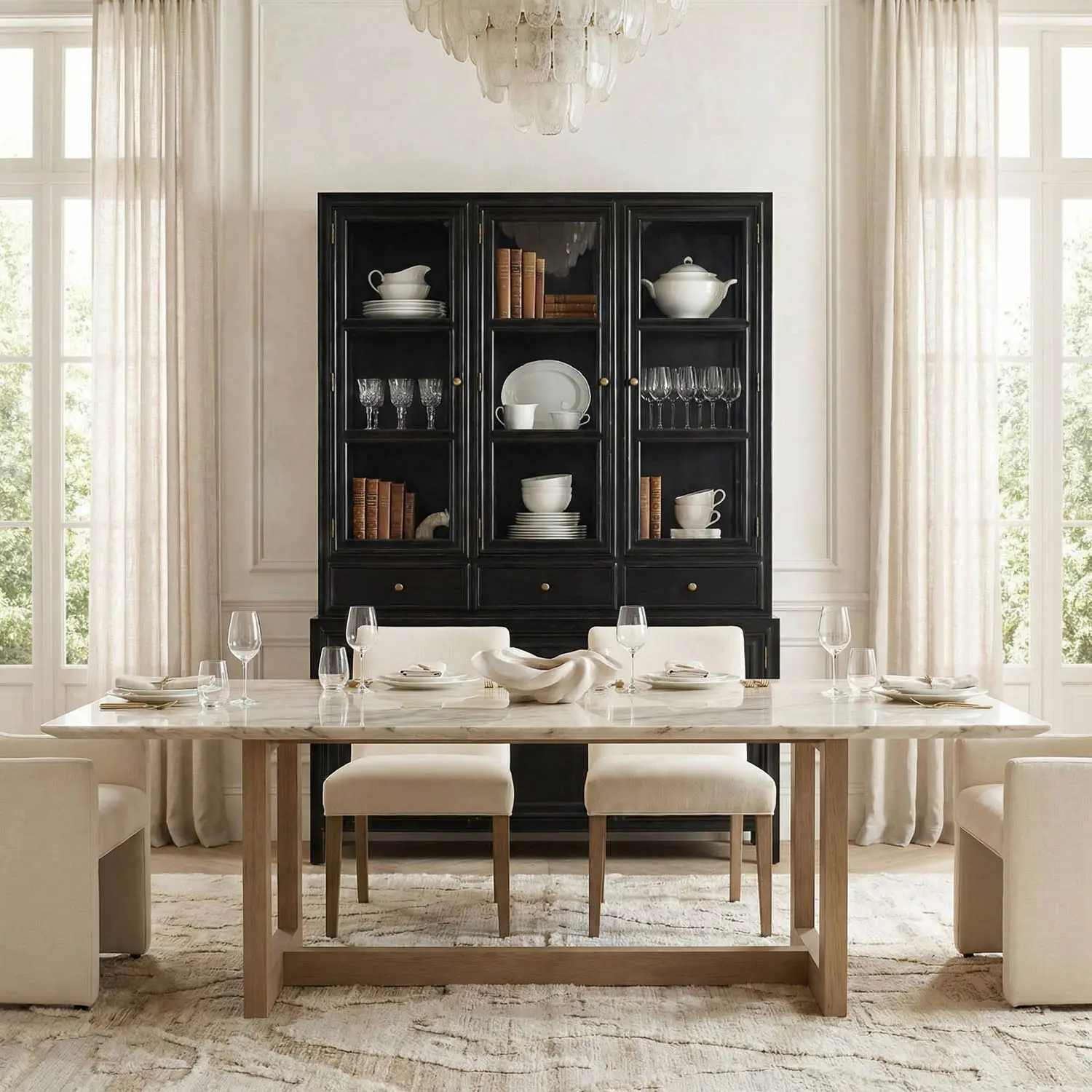This solid two-piece mahogany hutch, finished in our Hand Rubbed Black, has been expertly designed to resemble an heirloom piece with its simple lines, fifteen cubbies, and masterful construction.