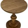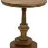 A sculptural side table featuring a round gold teak top and a turned circular base, designed for modern, transitional, and mid-century modern interiors. Its hand-finished gold teak and elegant design add warmth and sophistication.