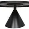 A round matte black iron table with a cone-shaped base and generous top. Both minimalist and industrial, it offers clean lines and a sculptural presence that suits both modern and transitional interiors with timeless strength and style.
