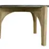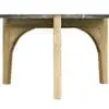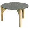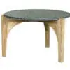 The Confucius Coffee Table features a round black marble top supported by a waxed elm base. This design combines natural textures with minimalist elegance in a compact, sculptural form.