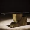 Inspired by the Art Deco style, the Couture Console showcases bold stacked geometric shapes, creating a dynamic architectural form. Pairing the sleek matte black iron top with the hand-applied brushed Aged Brass iron base, it delivers a modern, visual impact.