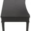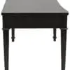 The Curba Desk in Hand Rubbed Black showcases sculpted mahogany curves, three spacious drawers with brass pulls, and a graceful silhouette. Its minimalist design and refined finish make it a striking addition to any workspace.