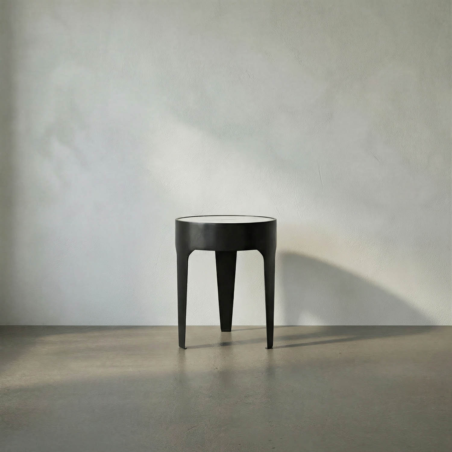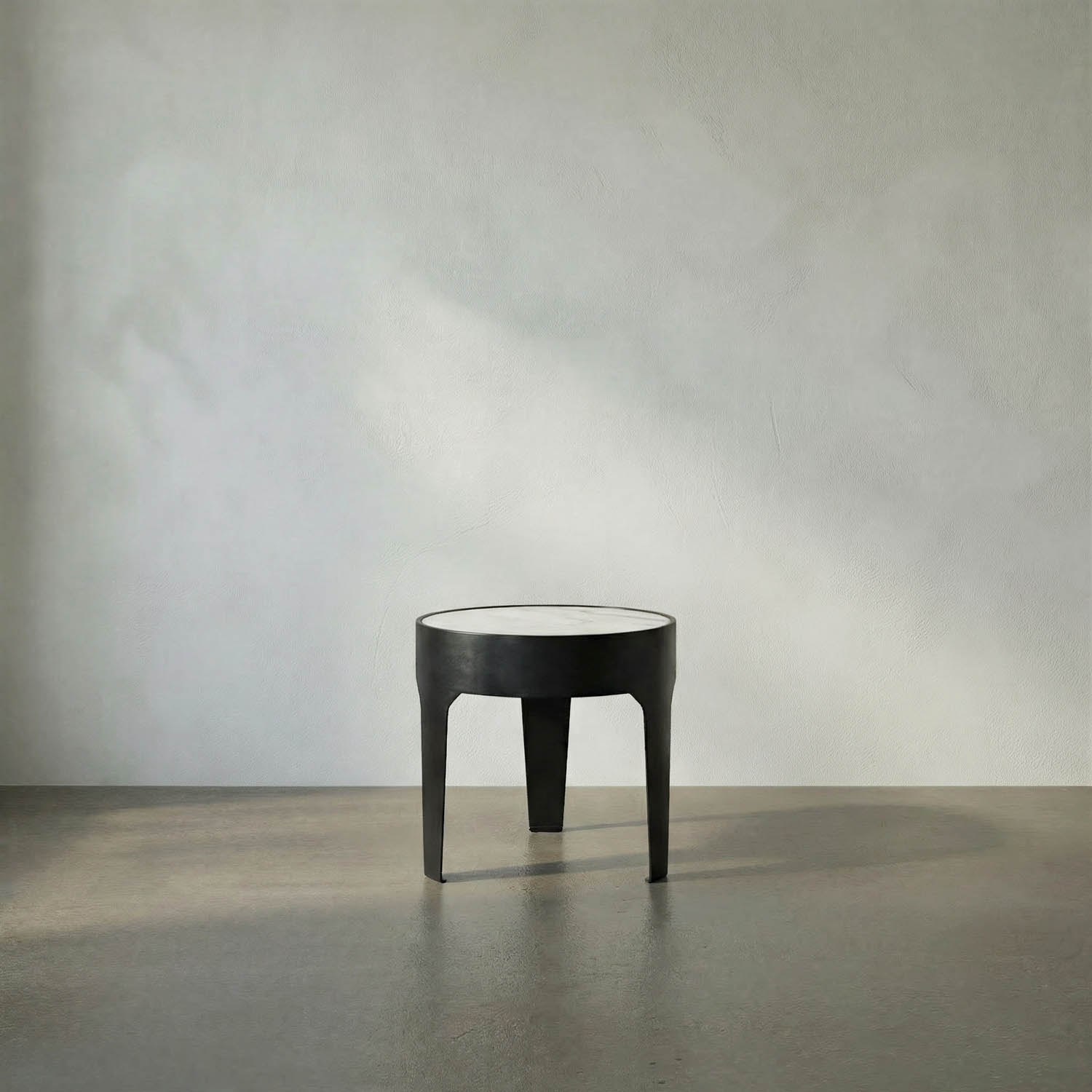 This large side table features a Bianco Crown marble top supported by a Matte-Black finished base. Its compact and minimalist design combines durability with elegance, making it a versatile sculptural accent for modern and contemporary interiors.