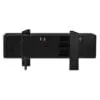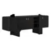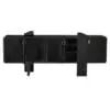 The Dallas Sideboard boasts three drawers and three doors, featuring bold proportions, a hand-rubbed black mahogany finish, and solid brass hardware. Its clean lines suggest a refined, transitional style, while offering ample storage.