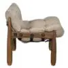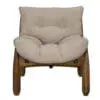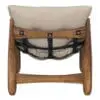 The Dante lounge chair features beige cotton cushions, suspended hammock-style on a solid wood frame. It has leather strap detailing and a relaxed, inviting design, making it ideal for cozy interiors.