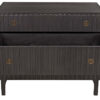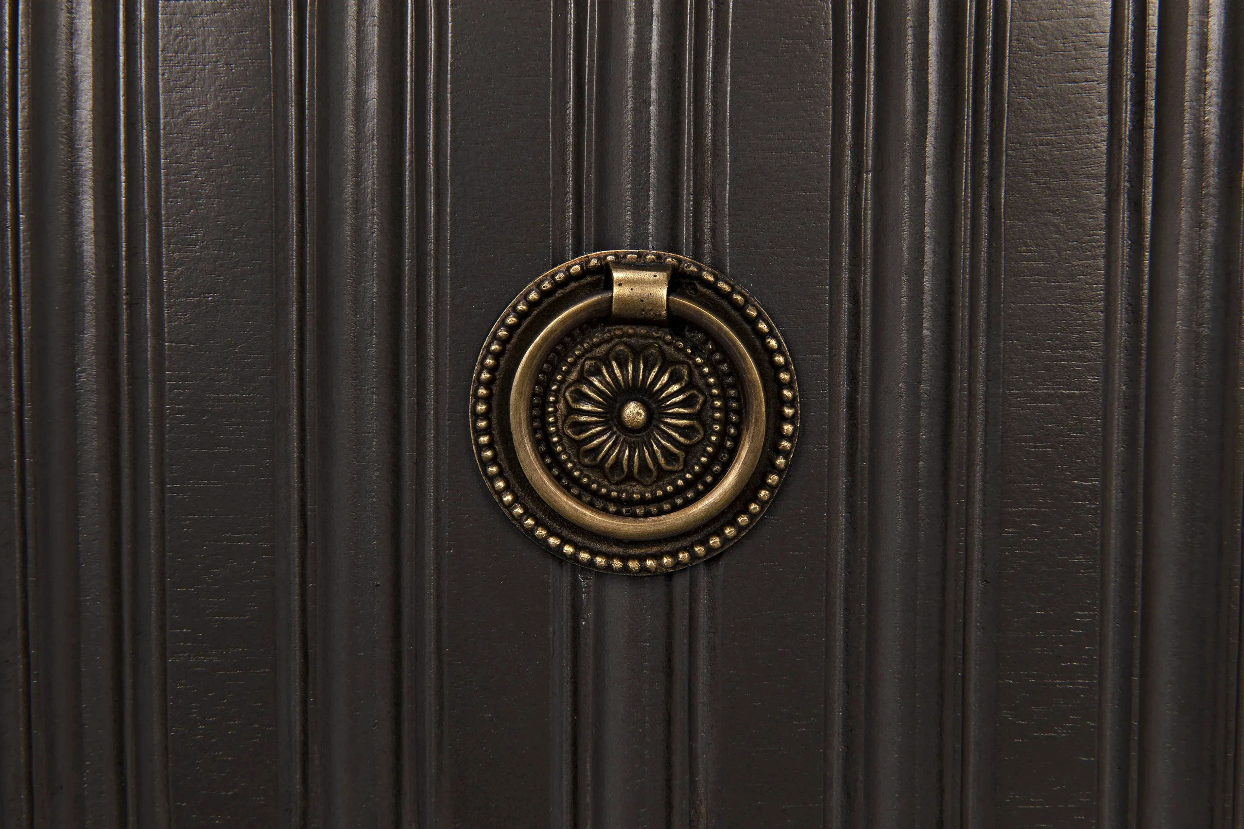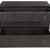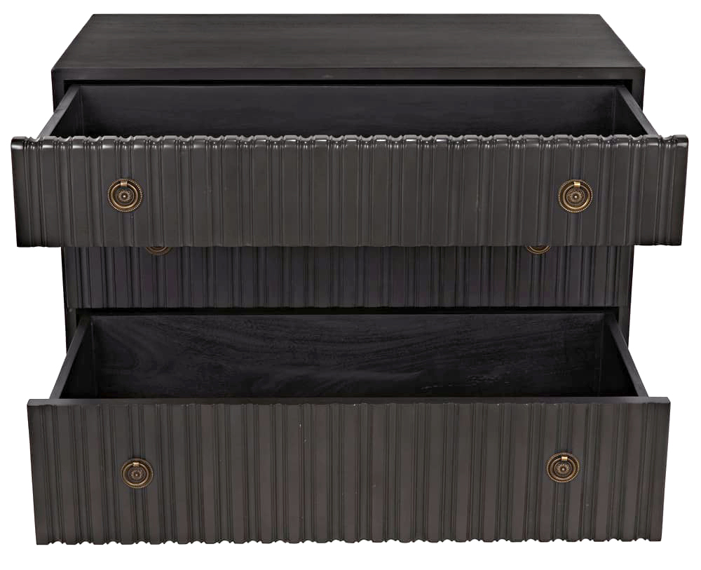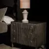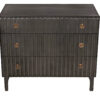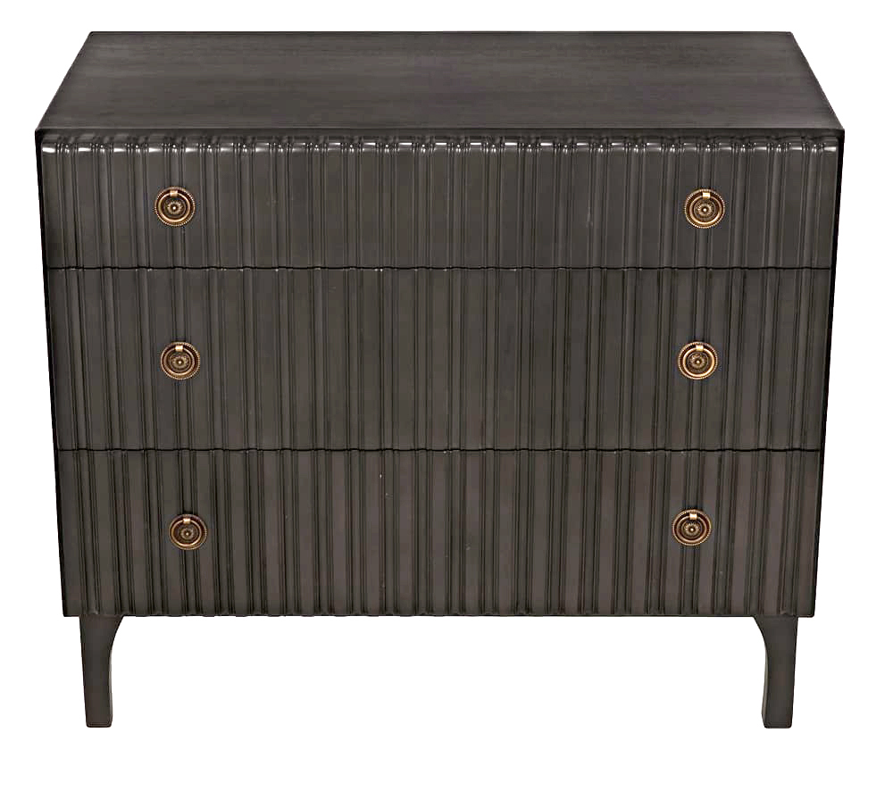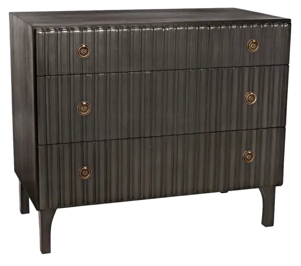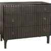 The Daryl Dresser features ribbed details on three mahogany drawer fronts, finished in our Pale finish, with circular brass pulls. Its compact design and tactile texture add subtle dimension to modern, rustic, or transitional interiors.