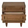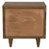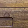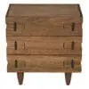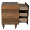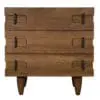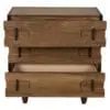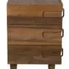 This three-drawer side table in Dark Walnut features a walnut frame with clean lines and tapered legs. Its rustic yet refined design adds substantial presence to both modern and transitional interiors.