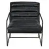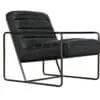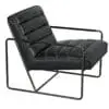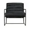 The Demeter Chair features a black metal frame with leather-wrapped armrests and a channel-tufted black leather seat and back.