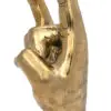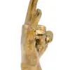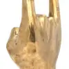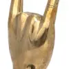 A solid brass sculpture depicting a human hand forming the “rock on” or “devil horns” gesture — a recognized symbol of rock and roll culture.
