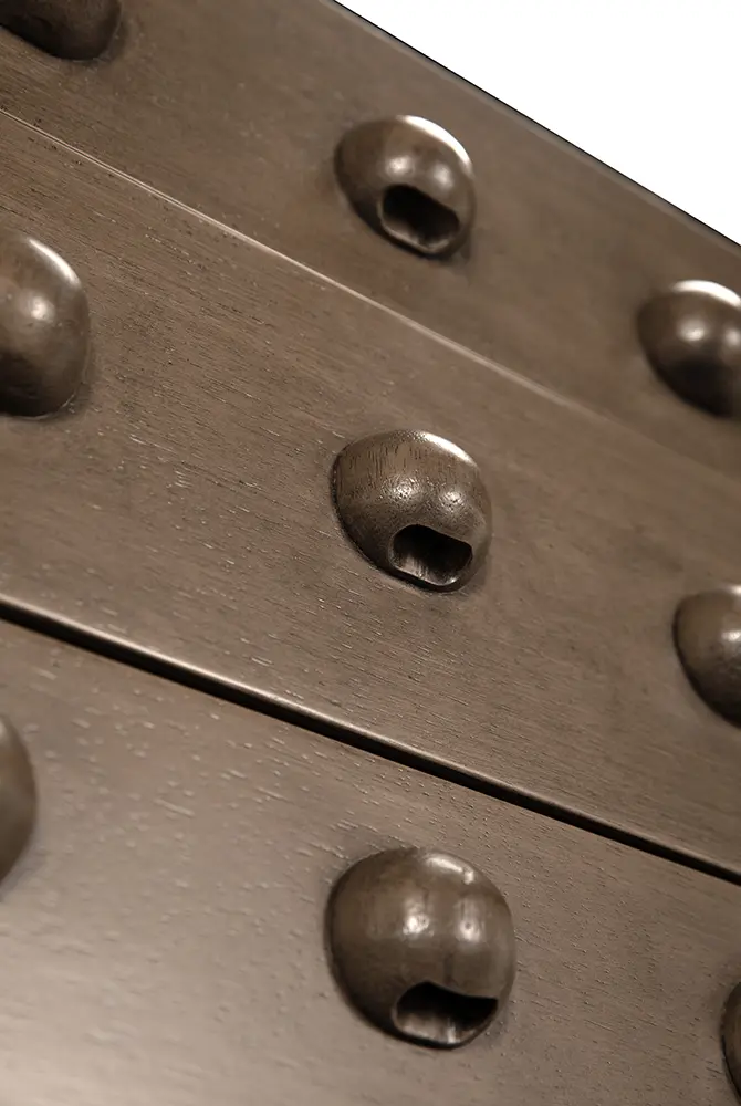 This six-drawer sideboard features a Greige walnut finish, clean lines, and sculptural domed drawer pulls. Its modern-organic design balances natural warmth with minimalist geometry, offering functional storage while serving as a refined, versatile statement piece in contemporary interiors.