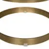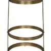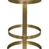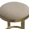 The Dior Bar Stool showcases circular iron bands stacked in an Antique Brass finish, topped with a round seat upholstered in linen. Its sculptural, open-frame design harmonizes industrial edge with refined transitional style.