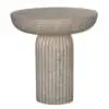 The Diva Table features a fluted column base supporting a generous, rounded top, both carved from stone with subtle natural patterning. Its bold silhouette and monolithic presence make it a grounded yet refined accent in any space.