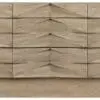 The nine-drawer Drake Sideboard features a striking faceted front with angular carvings that create a dynamic zigzag pattern. Finished in our Washed Walnut finish, its sculptural facade conceals ample storage while highlighting the bold geometric visual texture.