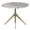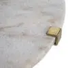 The Edith Large Adjustable Side Table features a Bianco Crown Marble top on a sleek Antique Brass finished quadropod base. Its height can adjust from 24.5_ to 33_, blending mid-century modern style with functional versatility.